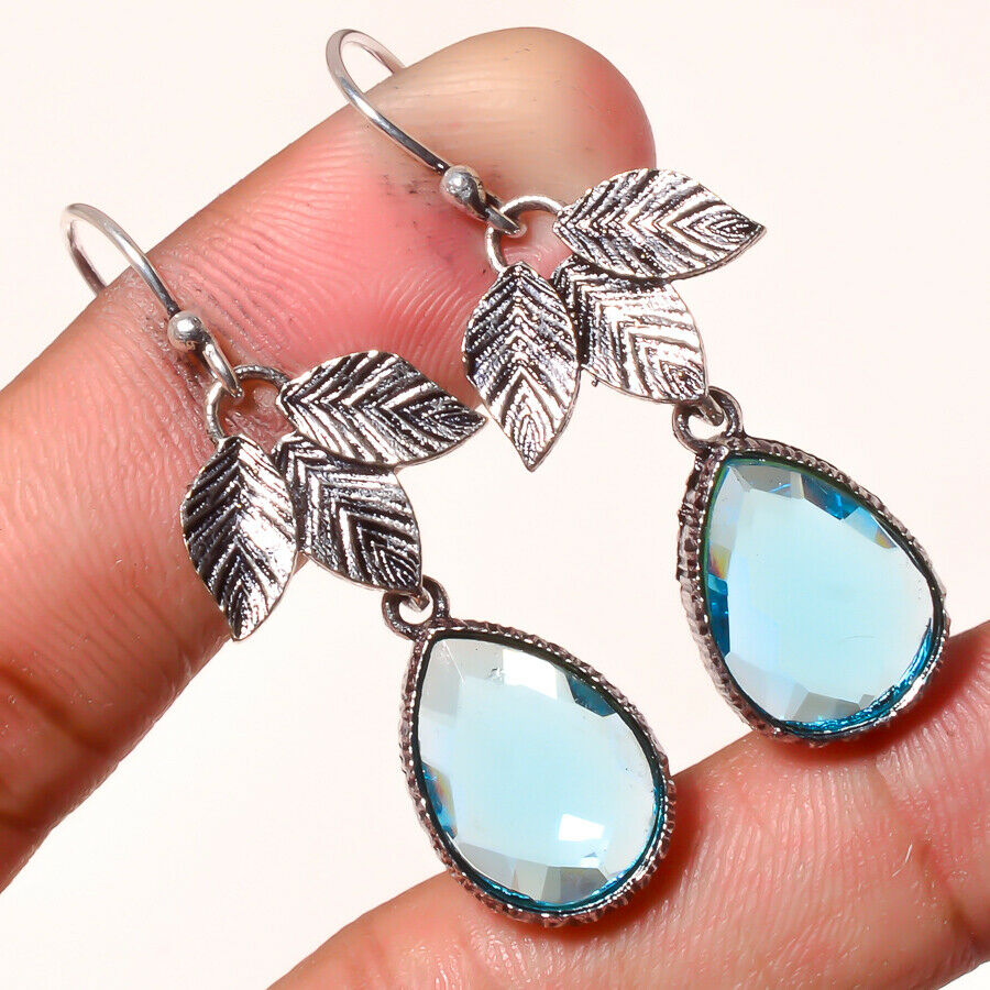 Χειροποίητα, ινδικά σκουλαρίκια, κατασκευασμένα από ασήμι 925. Διακοσμημένα με φυσικό, ορυκτό, πολύτιμο, Ελβετικό μπλε τοπάζι (Swiss Blue Topaz), (Lab-Created) ποιότητας AAA, σε κοπή oval. Tα σκουλαρίκια έχουν μήκος 4,6 εκατοστά. Total Carat Weight:55 (TCW).
