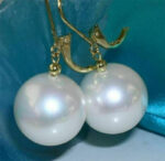 Εντυπωσιακά σκουλαρίκια με μεγάλες 14mm, genious 100% south sea shell πέρλες σε λευκό χρώμα, ΑΑΑ++ ανώτερης ποιότητας, ασημένιο δέσιμο με επιμετάλλωση από χρυσό 18K.