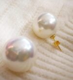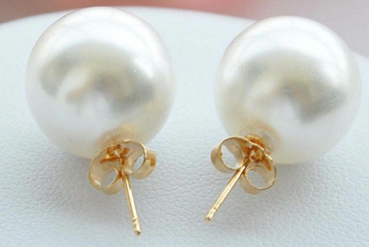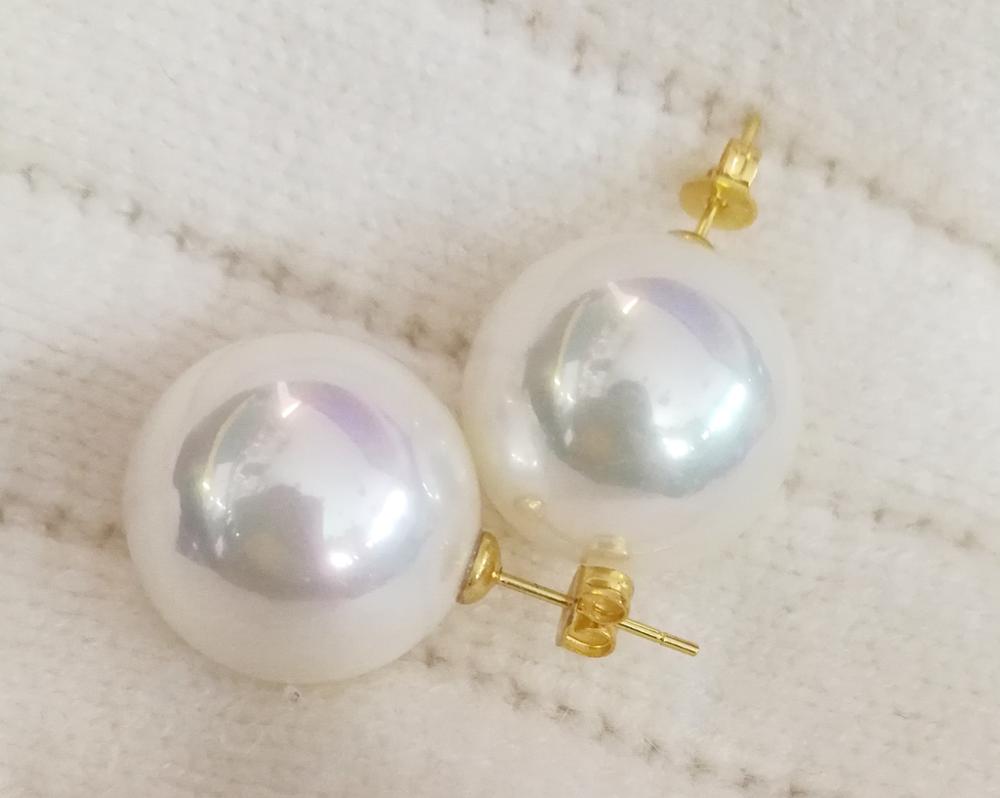 Σκουλαρίκια με ΜΕΓΑΛΕΣ και εντυπωσιακές λευκές πέρλες South Sea Shell 14mm, εξαιρετικής ποιότητας AAA++, από ασήμι 925 με επιμετάλλωση κίτρινου χρυσού 14 καράτια.