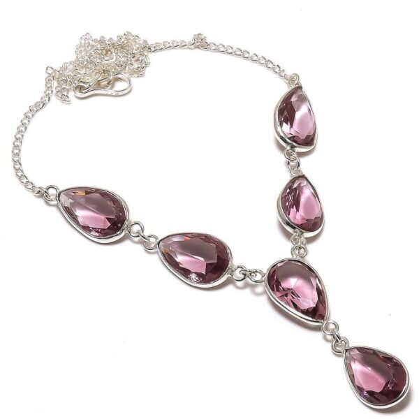 Ινδικό, γυναικείο κολιέ, κατασκευασμένος από ασήμι 925. Διακοσμημένο με υπέροχες, λαμπερές πέτρες αμέθυστου (Amethyst) (Lab creation) σε κοπή pear. Ένα λαμπερό κόσμημα για τις πιο όμορφες στιγμές της ζωής σας.