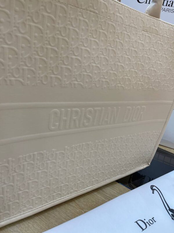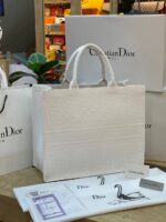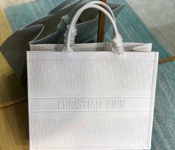 Dior Book Tote. Ιδανικά σχεδιασμένο για να μεταφέρει όλα τα καθημερινά είδη πρώτης ανάγκης, με την χαραγμένη υπογραφή «Christian Dior» στο μπροστινό μέρος. Μπορεί να μεταφερθεί με το χέρι ή πάνω από τον ώμο.