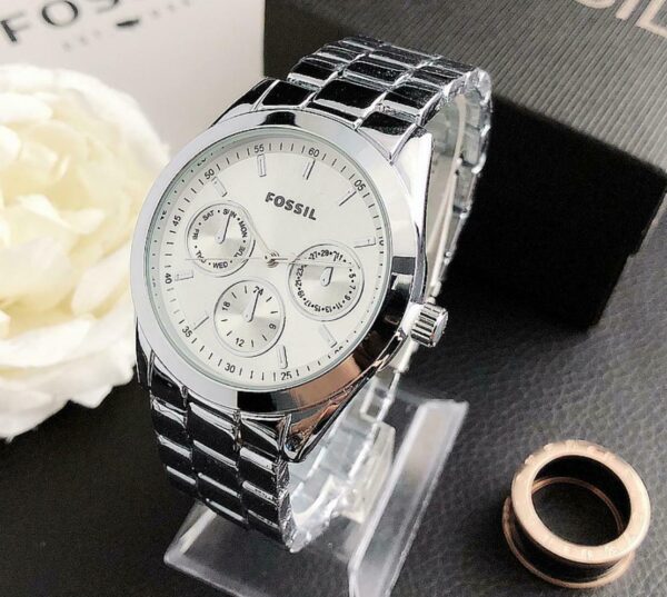 Ρολόι πολυτελείας FOSSIL, αναλογικό, πολύ μοντέρνο, σε silver χρώμα . Υψηλής αντοχής και ποιότητας για καθημερινή χρήση! Το κρύσταλλο του είναι από ορυκτό γυαλί που καλύπτεται από συνθετικό ζαφείρι (Sapphlex)!