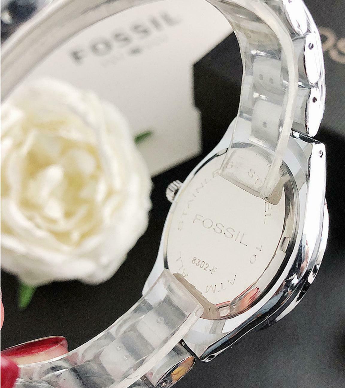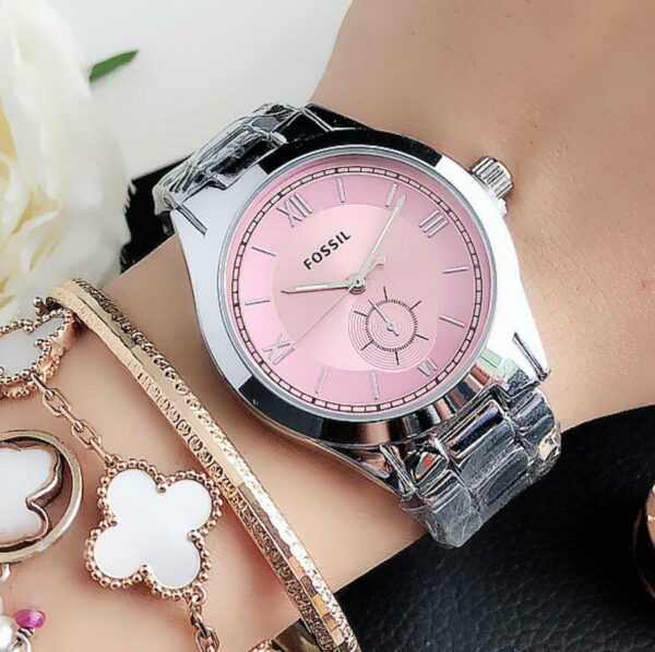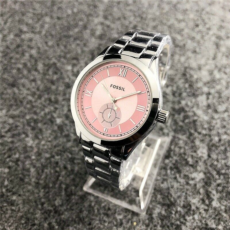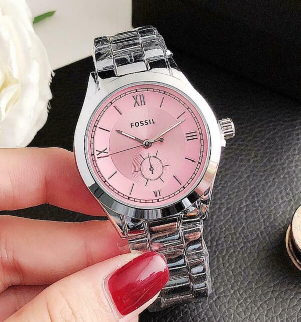 Γυναικείο ρολόι πολυτελείας FOSSIL, αναλογικό, πολύ μοντέρνο, σε silver χρώμα στο μπρασελέ και ροζ χρώμα μέσα στο καντράν. Υψηλής αντοχής και ποιότητας για καθημερινή χρήση! Το κρύσταλλο του είναι από ορυκτό γυαλί που καλύπτεται από συνθετικό ζαφείρι (Sapphlex)!
