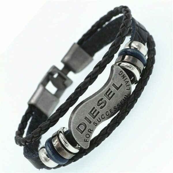 Για τις ιδιαίτερες σας εμφανίσεις ένα ανδρικό βραχιόλι τύπου diesel κατασκευασμένο από δέρμα αγελάδας και ανοξείδωτο ατσάλι. Περίμετρος βραχιολιού 21 cm και βάρος 15 gr