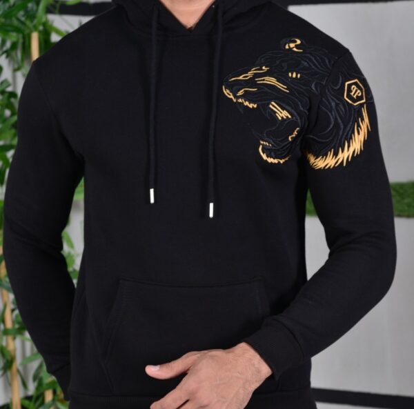 Βαμβακερό φούτερ Philipp Plein με κουκούλα και με κεντημένο μοτίφ την κεφαλή του λέοντα στην αριστερή πλευρά και στο μανίκι του.