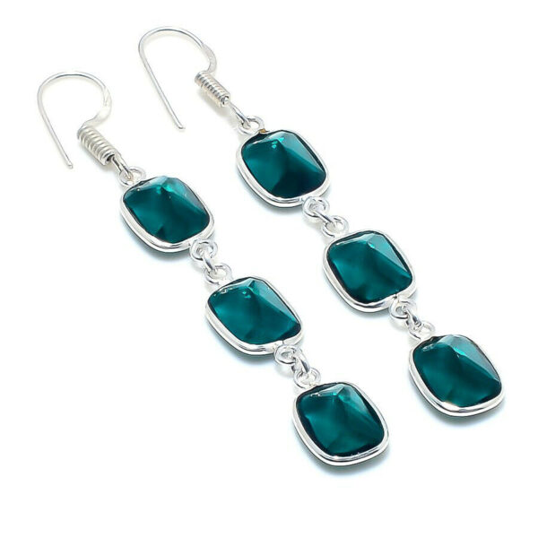 Χειροποίητα σκουλαρίκια κατασκευασμένα από ασήμι 925 και διακοσμημένα με 100% φυσική ορυκτή πέτρα Ιντιγκολίτης Τουρμαλίνη (Indicolite Tourmaline) σε κοπή ashoka. Σε αυτό πραγματικά το μοναδικό χρώμα. Total Carat Weight (TCW): 28. Τα σκουλαρίκια έχουν μήκος 6,50 εκατοστά.