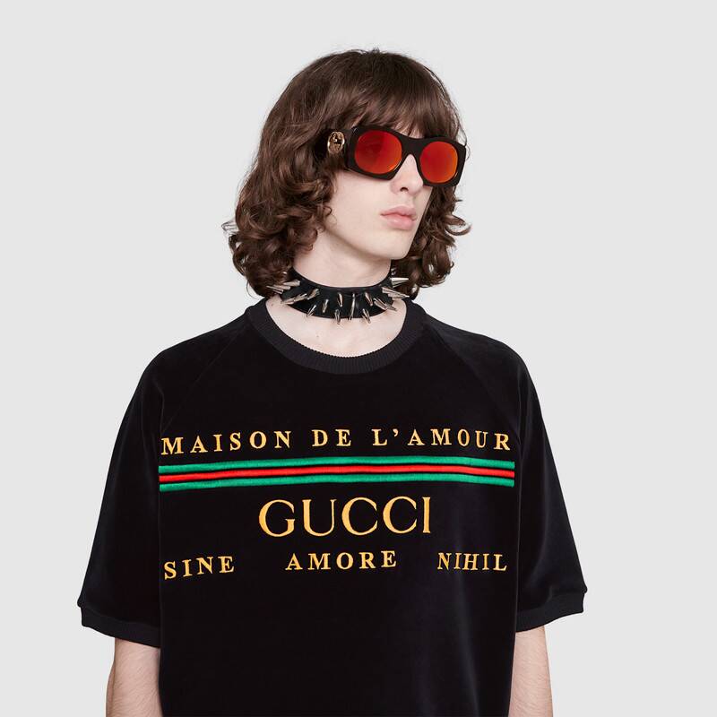 Βαμβακερό μπλουζάκι με λαιμόκοψη και τύπωμα GUCCI