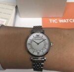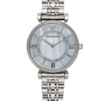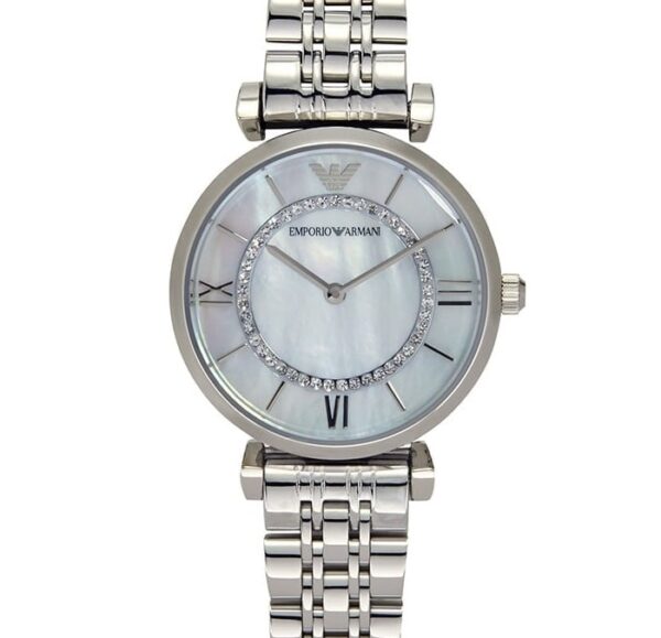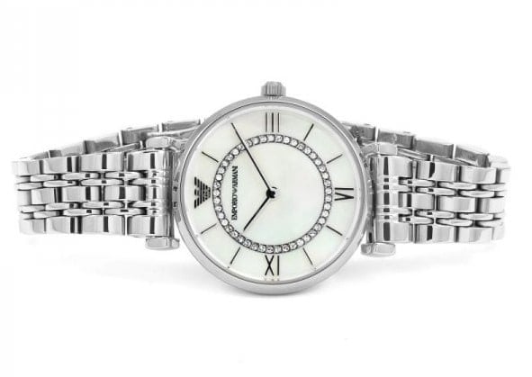 Ένα κομψό θηλυκό ρολόι, του οίκου Emporio Armani, της σειράς Gianni T-Bar. Με κάσα από ανοξείδωτο ατσάλι, διαμέτρου 32 mm. Με καντράν από φίλντισι, διακοσμημένο με κρύσταλλα. Το σύνολο, ολοκληρώνεται με το μπρασελέ, το οποίο είναι κατασκευασμένο από ανοξείδωτο ατσάλι.