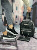 Τσάντα γυναικεία Guess backpack πολύ μοντέρνα σε χρώμα μαύρο με Silver μεταλλικό λογότυπο GUESS. Κατασκευασμένη από υψηλής ποιότητας οικολογικό δέρμα.