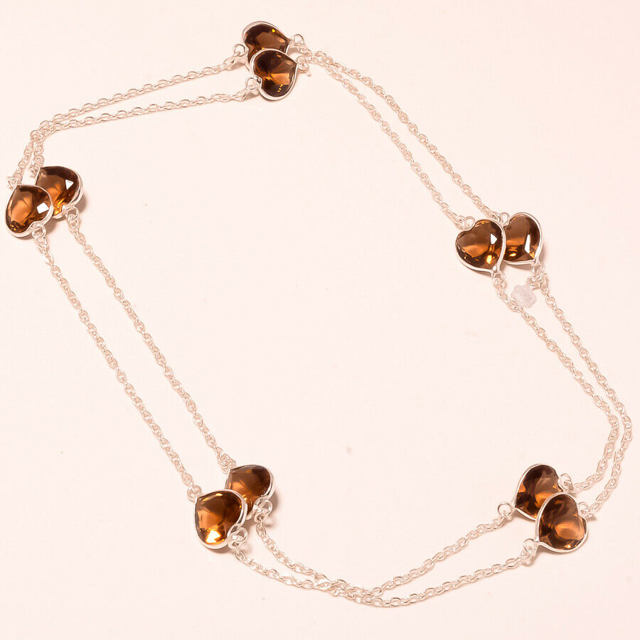 Χειροποίητο ινδικό, κατασκευασμένο από ασήμι 925, μήκους 92 εκατοστών. Διακοσμημένο με ορυκτές, πολύτιμες πέτρες, χαλαζία καπνιά Lab-Created) σε κοπή heart! Total Carat Weight (TCW): 145 CTS.