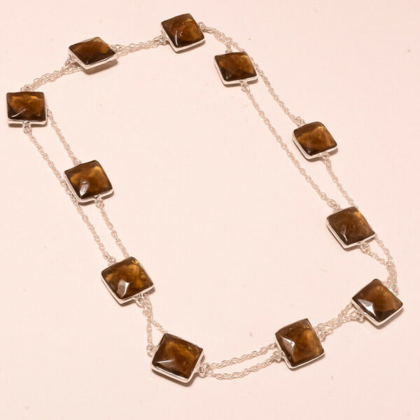 Ένα όμορφο κολιέ, χειροποίητο, ινδικό. Κατασκευασμένο από ασήμι 925, μήκους 92 εκατοστών. Διακοσμημένο με ορυκτές, καφέ, πολύτιμες πέτρες χαλαζία καπνιά σε κοπή cushion! Total Carat Weight (TCW): 165 CTS