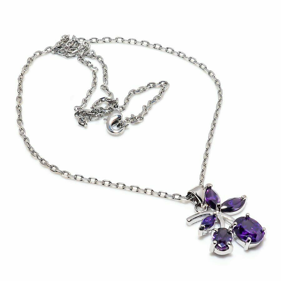 Χειροποίητο γυναικείο μενταγιόν κατασκευασμένο από ασήμι 925, διακοσμημένο με 5 φυσικούς, ορυκτούς, πολύτιμους Ιολίτες (Iolite), σε κοπή round, marquise & oval. Συνοδεύεται από αλυσίδα 45-50cm.