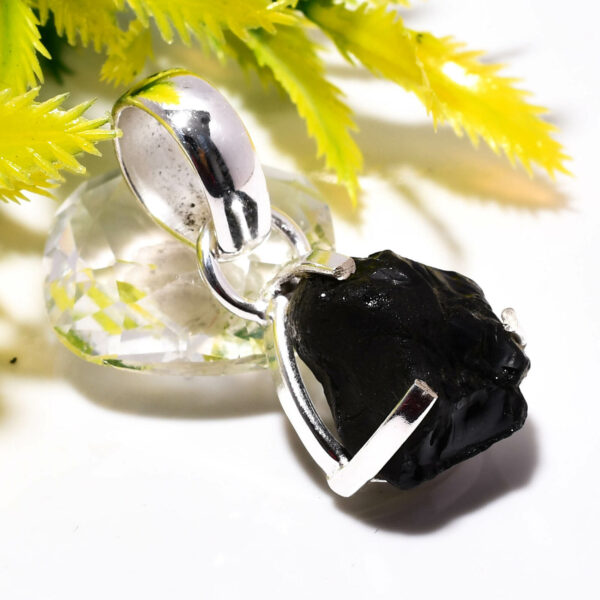 Χειροποίητο ινδικό μενταγιόν, κατασκευασμένο από ασήμι 925. Διακοσμημένο με ορυκτή, ακατέργαστη πέτρα, μαύρης τουρμαλίνης! Total Carat Weight (TCW): 140 CTS
