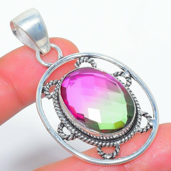 Χειροποίητo ινδικό μενταγιόν. Κατασκευασμένο από ασήμι 925. Διακοσμημένο στο με πέτρα πολύχρωμης τουρμαλίνης (Multi Color Tourmaline) σε κοπή oval.