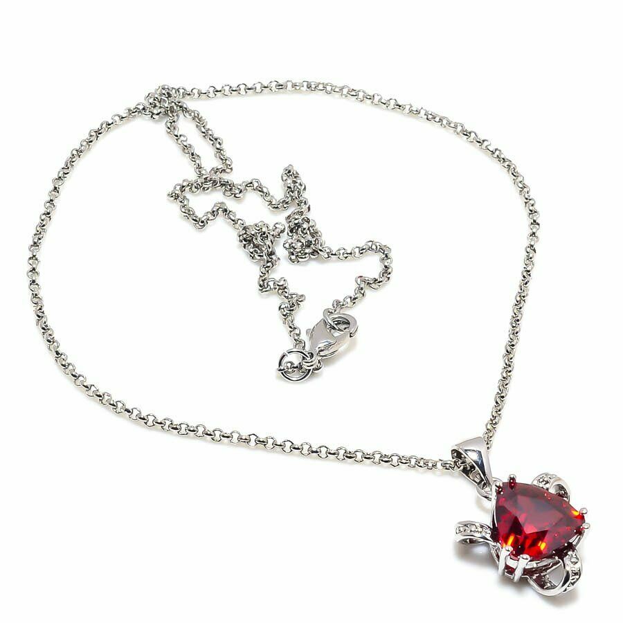 Χειροποίητο γυναικείο μενταγιόν κατασκευασμένο από ασήμι 925, διακοσμημένο με εξαιρετικής ποιότητας φυσικό, ορυκτό, πολύτιμο κόκκινο γρανάτη Μοζαμβίκης (Mozambique Red Garnet), σε κοπή pear. Συνοδεύεται από αλυσίδα 45-50cm.