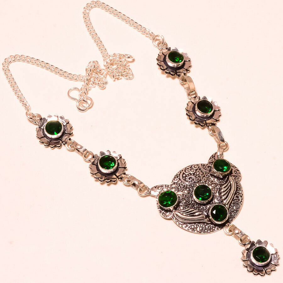 Eνα πραγματικό αριστούργημα, ινδικό, χειροποίητο κολιέ. Κατασκευασμένο από ασήμι 925, διακοσμημένο με ορυκτά, πολύτιμα Chrome Diopside (Διοψίδιος) Total Carat Weight (TCW): 335 CTS.Το κολιέ έχει μήκος 45cm.