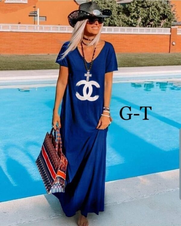 Αέρινο καλοκαιρινό φόρεμα Chanel για να είστε πάντα στη μόδα! Είναι κατασκευασμένο από 80% βαμβάκι και 20% βισκόζη.