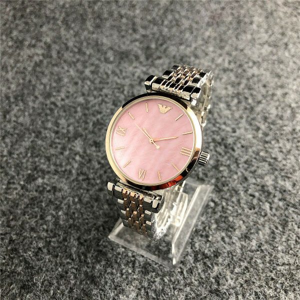 Πανέμορφο γυναικείο αναλογικό ρολόι πολυτελείας EMPORIO ARMANI με το μπρασελέ του σε silver-rose gold απόχρωση και κούμπωμα ασφαλείας! Η κάσα του από ανοξείδωτο ατσάλι και η διάμετρος της είναι 3,6cm! Ροζ καντράν με αποχρώσεις που αναδεικνύουν την ομορφιά του!Eκθεσιακό κομμάτι βιτρίνας καταστήματος προηγούμενης σεζόν χωρίς την αρχική του συσκευασία. Αποστέλλεται σε πολυτελή συσκευασία και με τις εργοστασιακές του ζελατίνες.