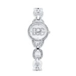 Υπέροχο αναλογικό γυναικείο ρολόι διακοσμημένο με λευκά ζιργκόν σε κοπή round εξαιρετικής ποιότητας και λάμψης.