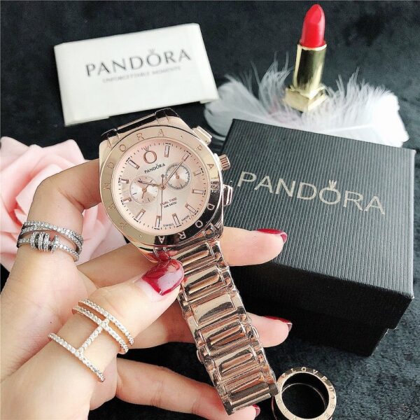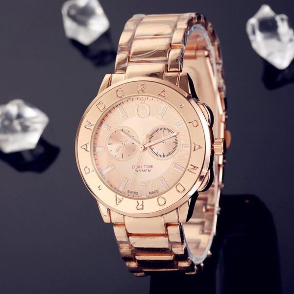 Γυναικείο ρολόι πολυτελείας PANDORA, αναλογικό, πολύ μοντέρνο, σε rose – gold χρώμα σε μπρασελέ και καντράν από ανοξείδωτο ατσάλι υψηλής αντοχής και ποιότητας για καθημερινή χρήση και με ενισχυμένο αντιθαμβωτικό τζάμι στο καντράν του! Αντιαλλεργικό, σύμφωνα με τις απαιτήσεις της Ευρωπαϊκής Ένωσης!