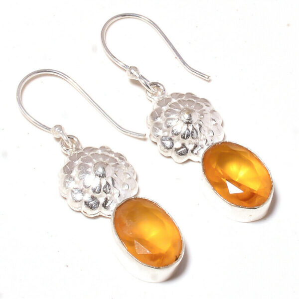 Χειροποίητα, ινδικά σκουλαρίκια, κατασκευασμένα από ασήμι 925. Διακοσμημένα με φυσικά, ορυκτά πολύτιμα, Citrine (Κιτρίνης) ποιότητας AAA, σε κοπή oval. Tα σκουλαρίκια έχουν μήκος 4,1 εκατοστά. Total Carat Weight:40 (TCW).