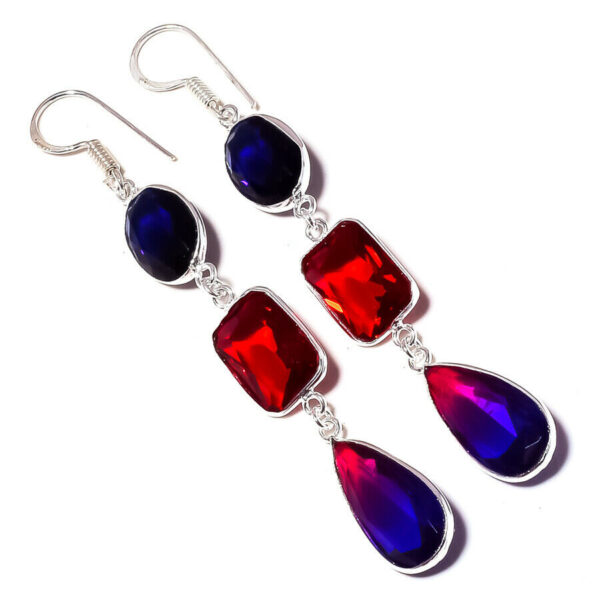 Χειροποίητα σκουλαρίκια κατασκευασμένα από ασήμι 925 και διακοσμημένα με φυσική ορυκτή τουρμαλίνη Total Carat Weight (TCW): 30.Τα σκουλαρίκια έχουν μήκος 8,12 εκατοστά.