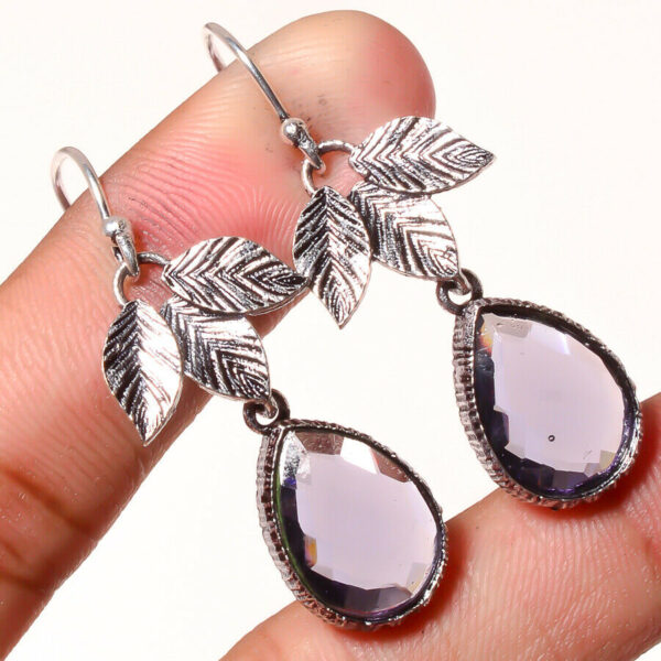 Χειροποίητα ινδικά σκουλαρίκια ασημένια 925 με αφρικανικό αμέθυστο - Swan Offers