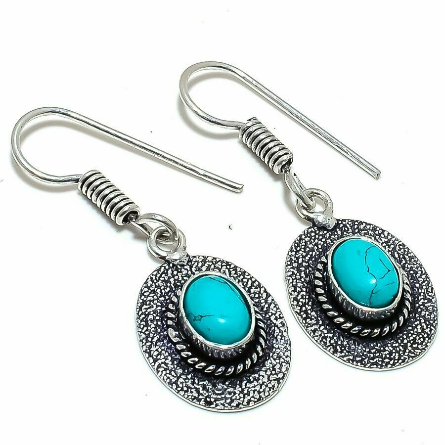 Χειροποίητα, ινδικά σκουλαρίκια κατασκευασμένα από ασήμι 925 και διακοσμημένα με απαράμιλλης ομορφιάς ορυκτές πέτρες, Santa Rosa Turquoise, σε κοπή oval, ιδιαίτερο χειροποίητο σκάλισμα .Μήκος σκουλαρικιού 4 εκατοστά.