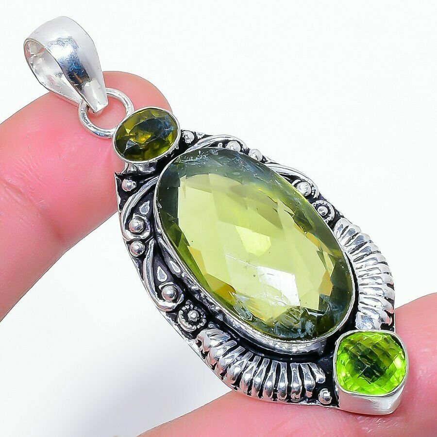 Χειροποίητο, ινδικό μενταγιόν κατασκευασμένο από μασίφ ασήμι 925 και διακοσμημένο με υπέροχο ορυκτό λίθο Περιδοτίτη (peridot) σε κοπή oval.