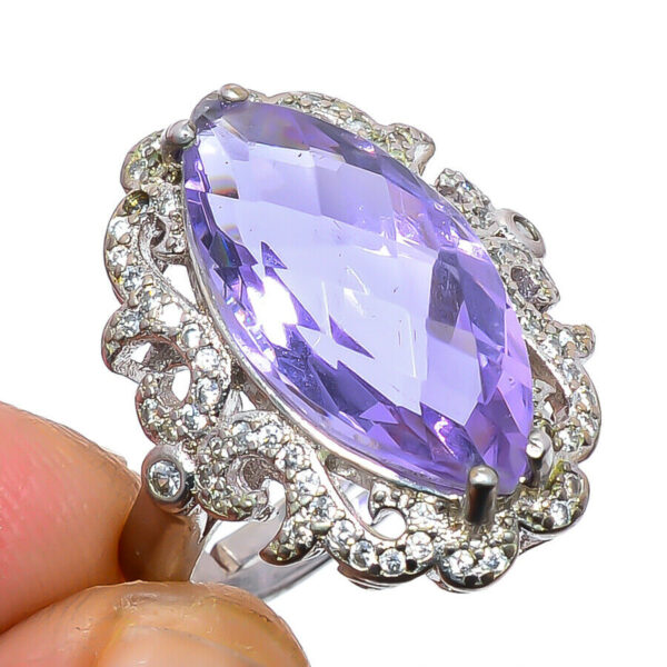 Χειροποίητο ινδικό δαχτυλίδι, κατασκευασμένο από ασήμι 925. Διακοσμημένο με πέτρα Αλεξανδρίτη (Alexandrite) (lab creation) σε κοπή oval και περιμετρικά με μικρότερες πολύτιμες πέτρες λευκού τοπάζ (lab creation). Ένα Open Size δαχτυλίδι!