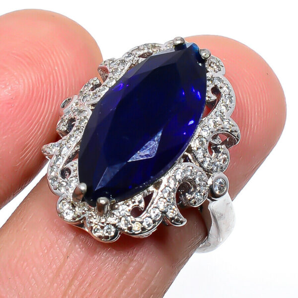 Δαχτυλίδι χειροποίητο ασήμι 925 διακοσμημένο με Μπλε ζαφείρι της Μαδαγασκάρης. - Swan Offers