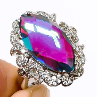 Δαχτυλίδι χειροποίητο ασήμι 925 διακοσμημένο με Black Rainbow Mystic Fire Topaz.