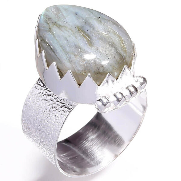 Χειροποίητο, ινδικό δαχτυλίδι, κατασκευασμένο από μασίφ ασήμι 925. Διακοσμημένο 100% φυσική, ορυκτή, απίστευτης ομορφιάς πέτρα, Λαμπραδορίτη!!