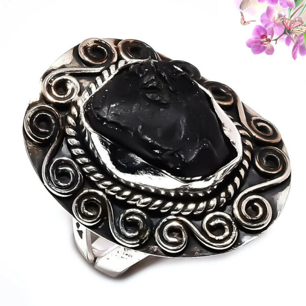 Χειροποίητo ινδικό δαχτυλίδι, κατασκευασμένο από ασήμι 925 με μαύρη τουρμαλίνη! - Swan Offers