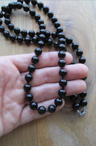 Χειροποίητο κολιέ με διπλό μεταξωτό νήμα με ορυκτό μαύρο όνυχα 10 mm.