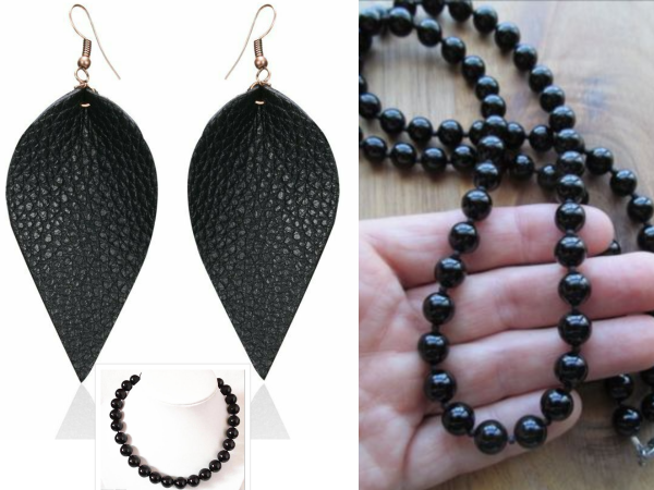 Χειροποίητο κολιέ με διπλό μεταξωτό νήμα με ορυκτό μαύρο όνυχα - Swan Offers