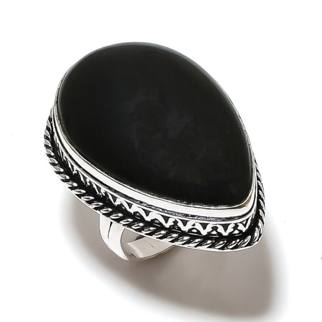 Χειροποίητο δαχτυλίδι, κατασκευασμένο από ασήμι 925 διακοσμημένο με ορυκτό πολύτιμο λίθο Μαύρου Όνυχα – Black Onyx σε κοπή pear. Ένα πραγματικά μεγάλο και εντυπωσιακό δαχτυλίδι που θα απογειώσει την εμφάνισή σας!