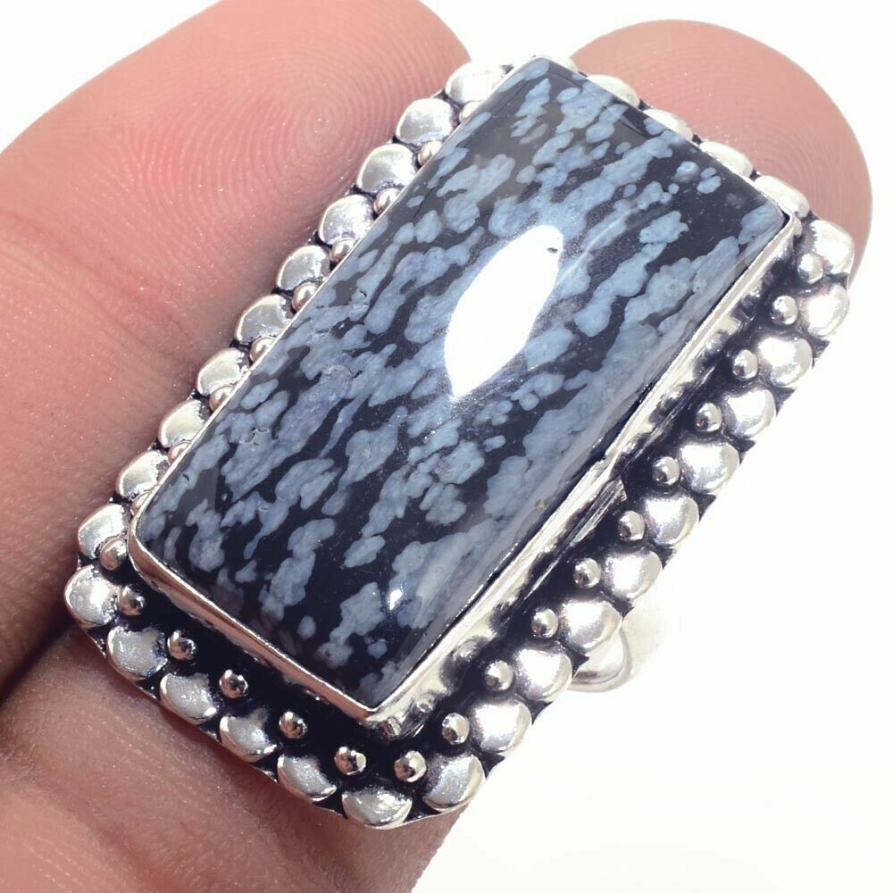 Χειροποίητο δαχτυλίδι κατασκευασμένο από ασήμι 925 διακοσμημένο με υπέροχο τεράστιο ορυκτό οψιδιανό σε πανέμορφο χρώμα. Διαστάσεις δαχτυλιδιού 4 Χ 2,4 cm.