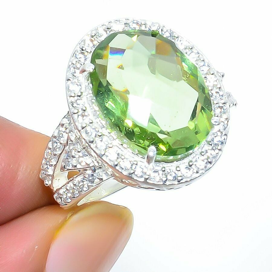 Δαχτυλίδι χειροποίητο κατασκευασμένο από ασήμι 925 με πράσινο αμέθυστο! - Swan Offers