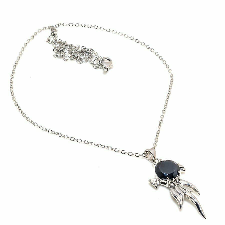 Χειροποίητο γυναικείο μενταγιόν κατασκευασμένο από ασήμι 925, διακοσμημένο με φυσικό, ορυκτό, πολύτιμο μαύρο σπινέλιο (spinel),σε κοπή round. Συνοδεύεται από αλυσίδα 45-50cm.