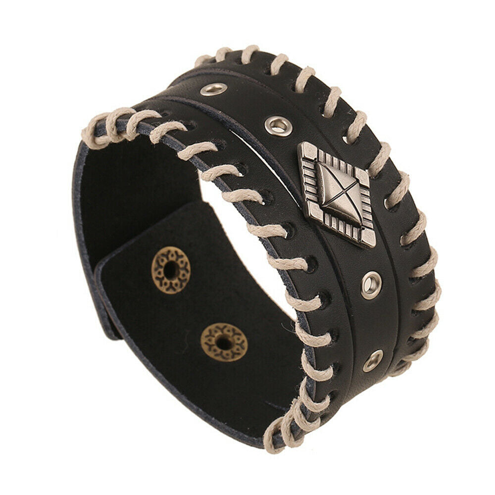 Όμορφο ανδρικό βραχιόλι σε μαύρο χρώμα για δυναμικούς χαρακτήρες! Κατασκευασμένο από δέρμα αγελάδας και με λεπτομέρειες από ατσάλι για hard εμφανίσεις! Έχει μήκος 23,2 εκατοστά και το λουράκι του διαθέτει τρύπες ώστε να προσαρμόζεται σε όλους τους καρπούς.