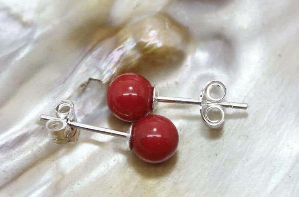 Εντυπωσιακά και παράλληλα διακριτικά σκουλαρίκια ασημένια 925 από υπέροχα κατακόκκινα, γεμάτα πάθος φυσικά κοράλλια South Sea Shell 10mm.