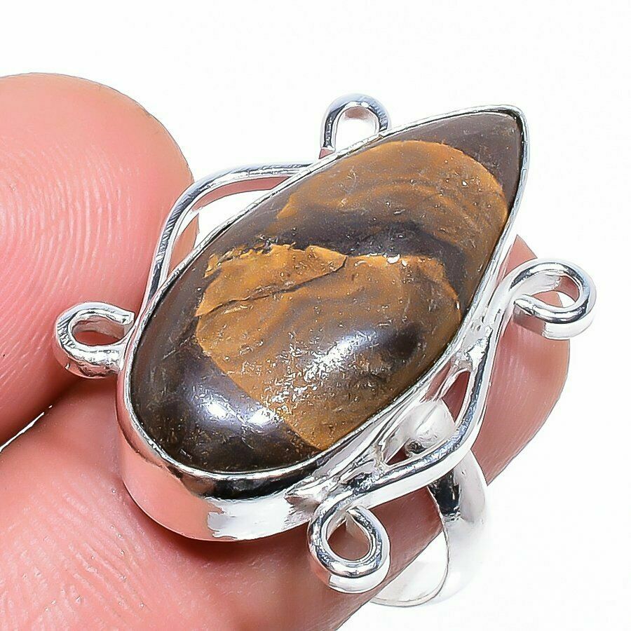 Ινδικό χειροποίητο δαχτυλίδι, διακοσμημένο με φυσική πέτρα Μάτι Τίγρης, κατασκευασμένο από ασήμι 925