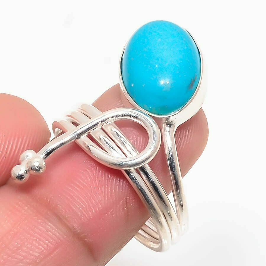 Ινδικό χειροποίητο δαχτυλίδι κατασκευασμένο από ασήμι 925 και διακοσμημένο με πολύτιμο λίθο σε μλπέ τυρκουάζ του σε κοπή oval.