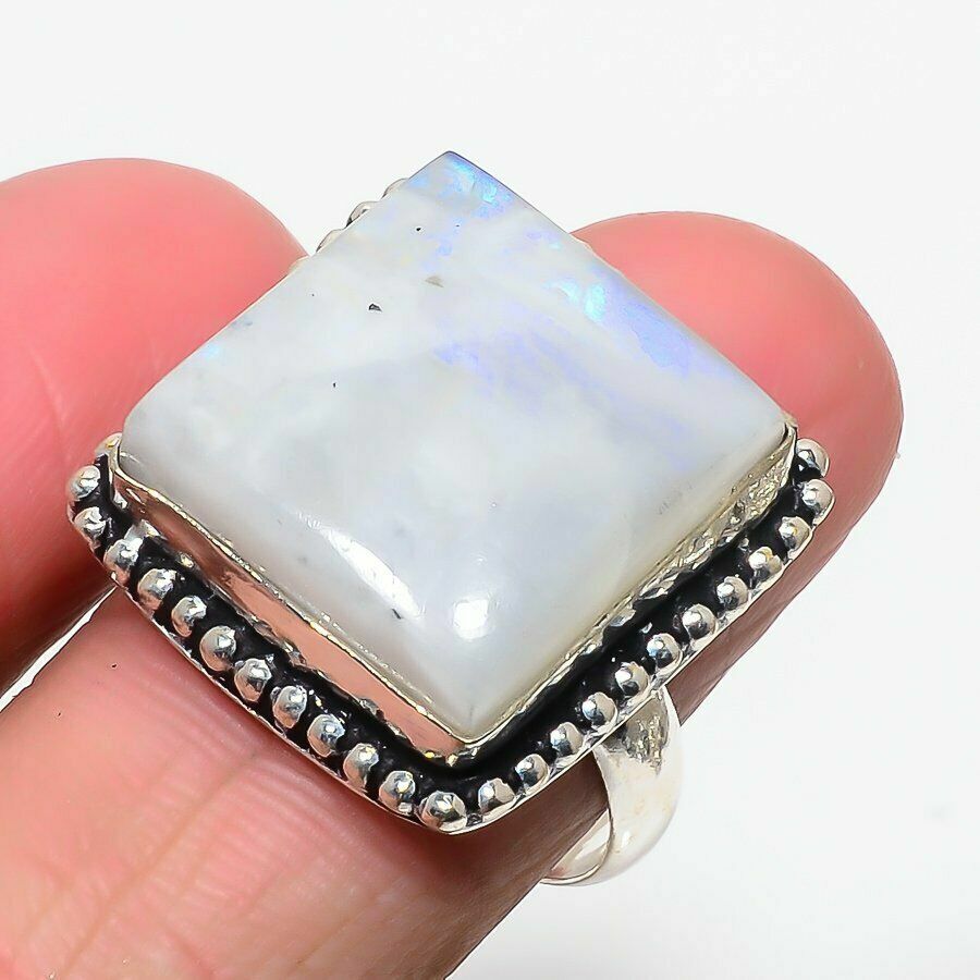 Ινδικό χειροποίητο δαχτυλίδι, ασημένιο 925, διακοσμημένο με μια υπέροχη ορυκτή moonstone Φεγγαρόπετρα