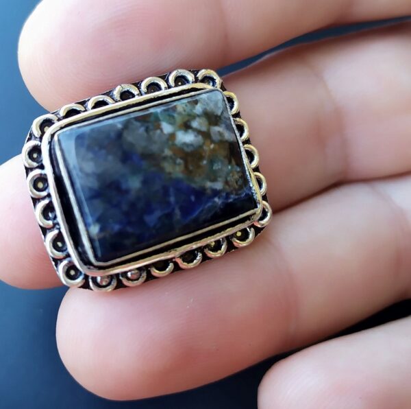 Ινδικό χειροποίητο ασημένιο 925 δαχτυλίδι με dark blue Χαουλίτη - Swan Offers