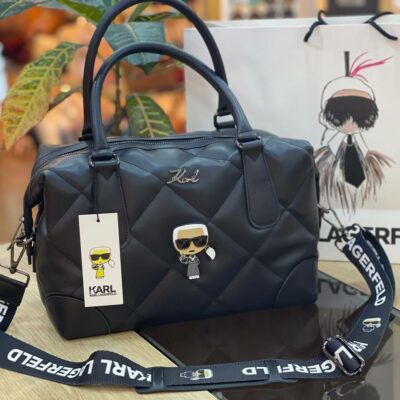 Μια τσάντα μεταφοράς που είναι έτοιμη για οτιδήποτε ρίξετε μέσα της. Αυτή η τσάντα κλείνει με φερμουάρ και μπορεί να φορεθεί από την επάνω λαβή ή το αφαιρούμενο δερμάτινο χιαστί λουράκι. Με ανάγλυφο το λογότυπο της υπογραφής. Οι διαστάσεις είναι: 34 x 27 x 15 cm.