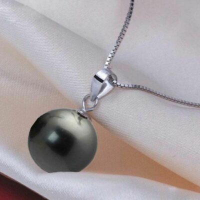 Υπέροχο μενταγιόν διακοσμημένο με μία μεγάλη μαύρη πέρλα 12x16mm, κατασκευασμένο από ασήμι 925. Συνοδεύεται από αλυσίδα 45- 50 cm!