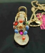 Μακριά αλυσίδα 70 cm και πρωτότυπα μεγάλα 3D επιχρυσωμένα μοτίφ διακοσμημένα με χρωματιστά κρύσταλλα και και οπαλίνες ιδανικά για βραδινές εμφανίσεις!!
