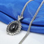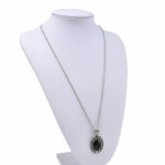 Μακρύ κολιέ, με μήκος αλυσίδας 80 εκατοστά πάχος αλυσίδας 3mm με μοτίφ μία μαύρη πέτρα με λουστρέ φινίρισμα!